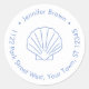 Este diseño pegatina flexible presenta un sencillo caparazón dibujado a mano rodeado por un borde circular de texto. Se muestra aquí para una etiqueta de dirección de retorno, pero todos los campos de texto son flexibles para sus necesidades, por ejemplo, podría ser un pegatina de agradecimiento. Tenga en cuenta que puede cambiar todos los colores, incluido el shell, desde el interior de la herramienta de diseño.