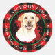 Un hermoso retrato de un recuperador de labrador amarillo está en el centro de este pegatina de dirección de retorno. La imagen se coloca sobre un fondo de manto de pintura roja brillante y se enmarca en verde Navidad. El texto en blanco tiene tu nombre y dirección en un borde rojo y negro de círculo de búfalo trenzado.