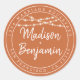 Rústica, moderna y sencilla etiqueta de la dirección de retorno boda con sus nombres en una elegante caligrafía de escritura manuscrita blanca sobre un fondo naranja quemado con un toque elegante de rústicas luces de cuerda de hadas. Complementario a la colección boda Caída en el Amor. Simplemente agregue sus nombres y dirección. Diseñado exclusivamente para usted por Happy Dolphin Studio. Si necesita ayuda o productos coincidentes, póngase en contacto con nosotros en happydolphinstudio@outlook.com. ¡Estamos encantados de ayudarle a hacer de su boda el día más hermoso!
