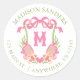 Pegatina Redonda Dirección de Escudo de monograma rosa y verde