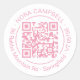 Moderno, rosa, redondeado código QR, nombre de negocio y pegatina de dirección con texto personalizado en un moderno tipo de letra sans serif, un elegante marco circular y espacio para su código QR. Cambia los colores de los elementos de diseño según tus deseos e inserta tu código QR a nivel de diseño. y.BEE PAPERIE #ZazzleMade #RoundQRCodeSticker #PinkRoundQRCodeBusinessSticker