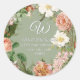 Pegatina Redonda Dirección de regreso Monograma Floral Coral Peonía