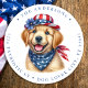 Pegatina Redonda Dirección De Regreso Patriótico Del Perro Cachorro