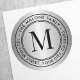 Elegante etiqueta de dirección de retorno con su monograma personalizado inicial y su dirección de retorno en un tipo de letra sans-serif moderno en un gradiente gris plateado de imagen impreso.