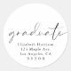 Moderno pegatina de direcciones de retorno para sus anuncios de graduación, invitaciones a fiestas y tarjetas de agradecimiento con "graduados" en un guión de moda delgada y el nombre y dirección del graduado en una tipografía simple.