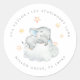 Estos pequeños elefantes pegatinas circulares de vuelta son perfectos para un simple sobre de invitación a la ducha para bebés. El diseño moderno cuenta con un bonito zoológico de color safari en una suave nube con estrellas amarillas brillantes.