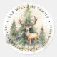 Devolver la etiqueta de caucho con una hermosa pintura acuarela de un escenario parado frente a árboles de Navidad, y tu nombre y dirección.