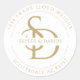 Pegatina Redonda Dirección de retorno de monograma simple Boda