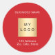 Pegatina Redonda Dirección del logotipo del negocio blanco rojo
