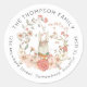Pegatina Redonda Dirección del nombre de devolución de floral rosa