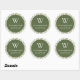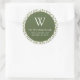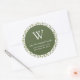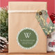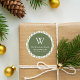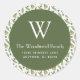 Este pegatina, de ambiente festivo, cuenta con un círculo de olivos verdes sobre una acuarela de vegetación invernal, que incluye pinos verdes de hoja perenne y brotes de flores con bayas rojas, sobre un fondo blanco. Personalice el diseño con su monograma inicial y su nombre familiar en letra serif blanca, con su dirección a continuación en sans serif.