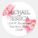 Pegatina Redonda Dirección personalizada de Flores de Peones Rosa