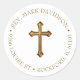 Pegatina Redonda Dirección religiosa cruzada de oro
