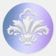Pegatina Redonda Diseño de damasco blanco en azul y púrpura