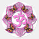 Pegatina Redonda Diseño de Mandala rosa ohm con mariposas monarca