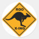 Roo X-ing de señalización para los canguros geniales que prefieren acortar su nombre. Señal de carretera en forma de diamante en amarillo y negro.