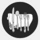 Pegatina Redonda Diseño de Siverware en blanco y negro