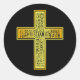 Pegatina Redonda Diseño de texto cruzado de oro cristiano