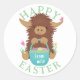 Pegatina Redonda Diseño de una cesta de pascua de vaca de la región