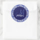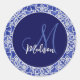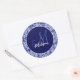 Pegatina Redonda Diseño elegante azul grisáceo inicial monogramado
