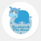 Pegatina Redonda Disfrutando mi ahora Kawaii lindo rinoceronte azul