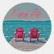 Pegatina Redonda Disfrute de la vida en las sillas rústicas de