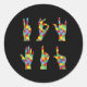 Pegatina Redonda Diversión ASL Amor Rótulo Lenguaje Autismo Concien