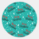Pegatina Redonda Diversión Moderno Guion Merry Christmas Azul Turqu