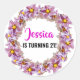 Girando 21 pegatinas redondos de color rosa y lilo. pegatinas de fiestas de 21 años. "Jessica cumple 21 años" es completamente personalizable. Puede cambiar el nombre y la edad. Elija los colores y tipos de letra que desee en el menú de edición. Utilice las invitaciones de su grupo para personalizar completamente el fiesta con este tema tropical. ...