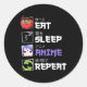 Pegatina Redonda Divertido comiendo para dormir anime repetir regal