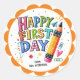 Pegatina Redonda Divertido Feliz Primer Día Del Lápiz Escolar
