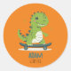 Pegatina Redonda Divertido Skateboarding Dinosaur Con Nombre Para N