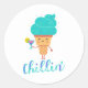 Pegatina Redonda Diviértete Fresco Verano Azul Turquesa Helado Rela