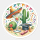 Pegatina Redonda Diviértete graduación con tema de fiesta mexicana