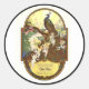 Vintage c1920 ad/label para perfume francés. Estilo art déco con pavo real de colores vivos y pequeñas hadas. Dominio público.