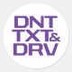Palabras por las que vivir... no manden mensajes de texto ni manejen. Baja el teléfono móvil mientras conduces. Una vez al segundo, te alejarás de la carretera a los 17 km, recorres unos 25 m. Eso es una distancia larga y no hay tiempo suficiente para evitar un accidente o parar tu auto. Los estudios muestran que los mensajes de texto mientras conduces son aún peores que si estuvieras borracho o drogado mientras conduces. El texto de estos pegatinas dice "DNT TXT & DRV". Si lo desea, puede cambiar el color de fondo. ¿Quieres este o un diseño similar en otro artículo? Explorar mi tienda de texto de dont y de unidades.