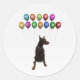 Pegatina Redonda Doberman Pinscher deseando un feliz Año Nuevo 2016