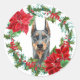 Pegatina Redonda Doberman Pinscher Poinsettia Holly Holiday Wreath