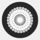 Pegatina Redonda Doily. Imagen del círculo de encaje blanco.