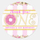 Pegatina Redonda Donas Glaseado Rosado Cumpleaños UNO 1 Primero