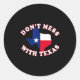 Pegatina Redonda Don't Mess With State Outline And Flag Texas
