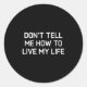 Pegatina Redonda Don't Tell Me How To Live My Life, Funny, Sarcasti
