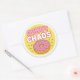 A playful round sticker featuring a pink frosted donut with colorful sprinkles and bold bubble text that reads “Donut Chaos.” Perfect for laptops, water bottles, and notebooks — a sweet reminder to embrace the mess with flavor.