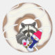 Donut Raccoon con un Navidad de snowman diseñando Pegatina redondo clásico