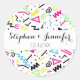 Pegatina Redonda Doodle amarillo azul neón verde neón de los años 9