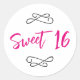Doodle de moda decorativa color negro, blanco y rosa caliente Tipografía dulce 16 sobre pegatinas redondos clásicos o sellos para sobres. El tipo de letra es un precioso guión moderno de caligrafía con un toque decorativo que tiene el aspecto de letras a mano. Dulce dieciséis - 16º diseño de fiesta de cumpleaños para su celebración de hitos. Puede cambiar el texto de este diseño de tipografía para otra fiesta de cumpleaños.