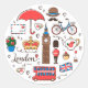 Este diseño presenta símbolos londinenses colocados en forma de círculo sobre un fondo blanco.