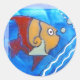 Pescado DooDles pintado a mano sobre un fondo azul océano. Los detalles de DooDles están pintados con acentos dorados rojos y verdes opalinos.