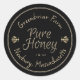Simple Etiqueta de miel con abejas doradas estilizadas y "Miel pura" escrito en texto de oro grabado en relieve. Su nombre y ubicación de Apiario está escrito en un guión informal, fácil de leer. Añade tu peso neto. Doble borde dorado.