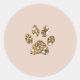 Pegatina Redonda Dorado Brillo Beige Rubor Pata de Mascota Cachorro